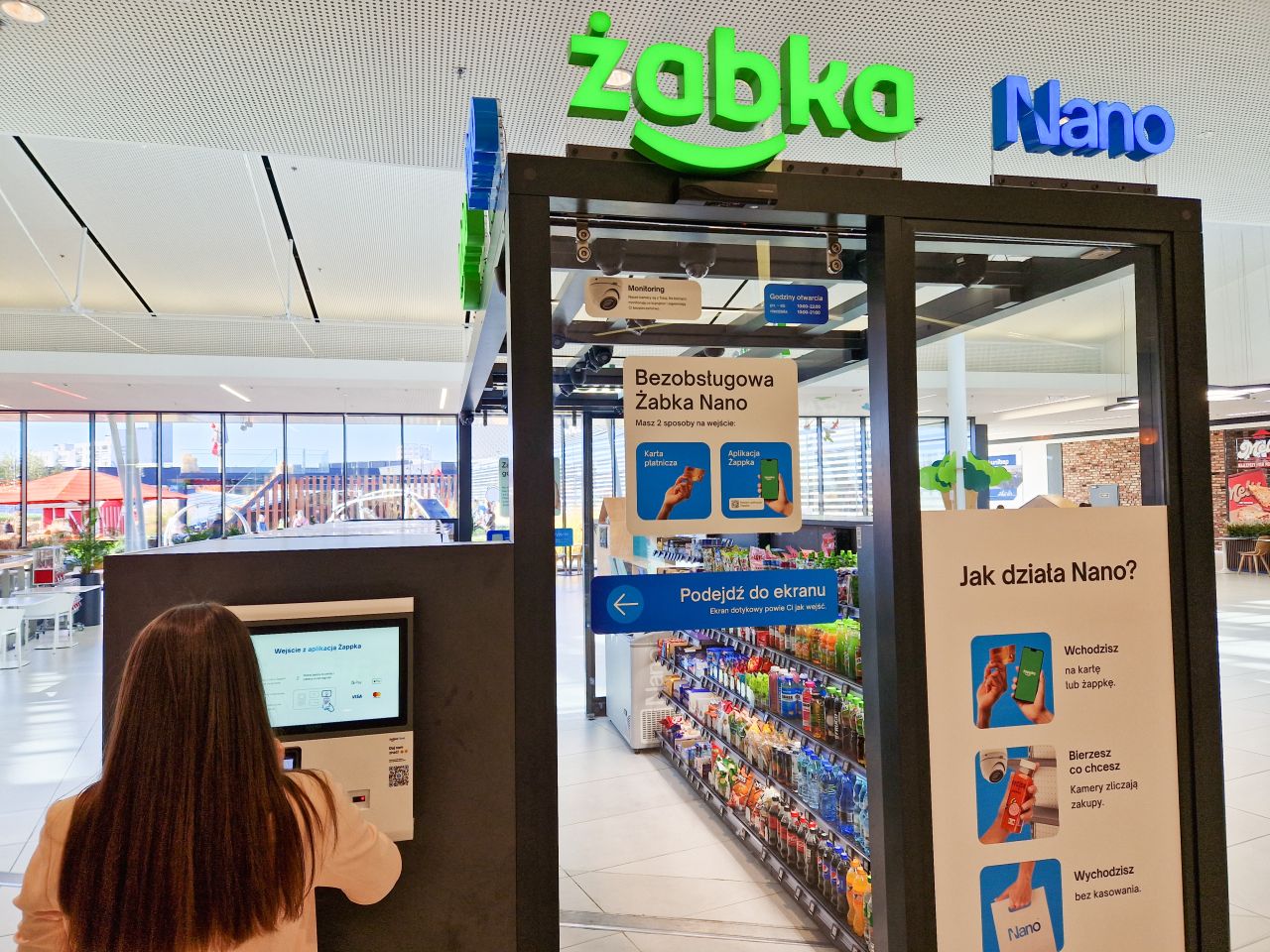 Robiąc zakupy w Żabce Nano nie trzeba skanować produktów. Wystarczy wziąć towar z półki i wyjść. Specjalny system kamer, działający w oparciu o algorytmy sztucznej inteligencji i machine learning, rozpozna zdjęte produkty, doliczy je do rachunku kupującego, a następnie sfinalizuje transakcję w momencie, kiedy klient wyjdzie ze sklepu.